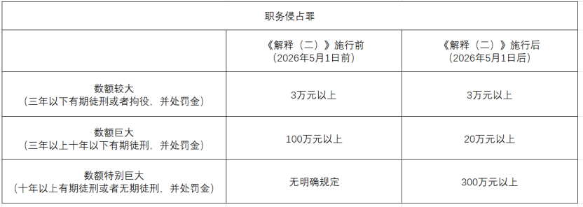 2021 年 3 月 1 日,《刑法修正案(十一)》正式施行,对职务侵占罪、挪用资金罪、非国家工作人员受贿罪这三类典型职务犯罪的刑罚结构作出调整,将原有两档刑期修改为三档量刑,并提高了法定最高刑,从立法层面彰显了对民营企业产权保护力度的强化。但该修正案并未同步明确新增第三档刑期对应的数额标准,导致司法实践中,前两档量刑数额仍沿用 2016 年《解释(一)》的既有规定,而第三档量刑标准长期处于无明确依据可参照的状态。(可参见